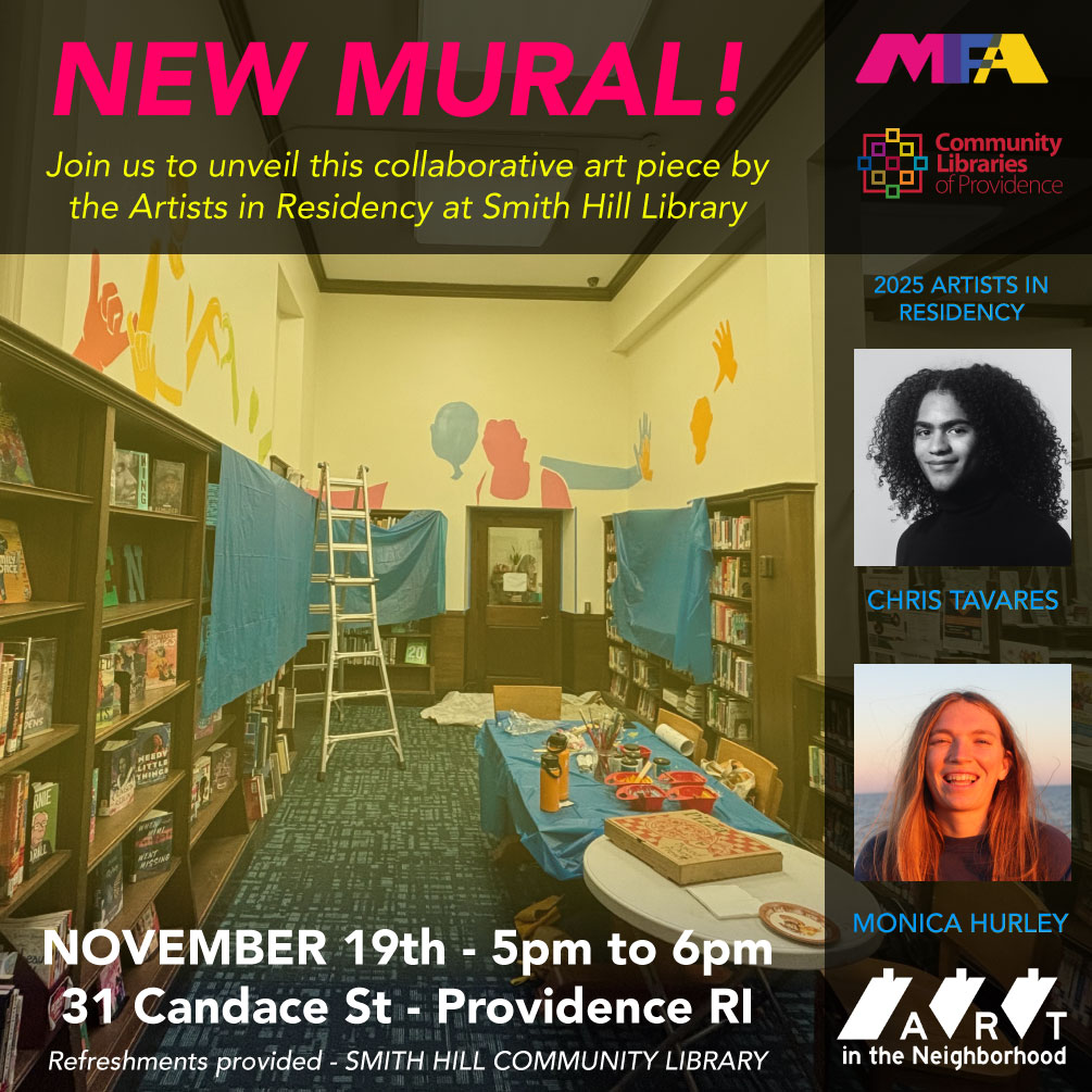 Continuing the “Art in the Neighborhood” initiative in partnership with the Communities Libraries of Providence (CLPVD), this year’s program offered structural and financial support for artists to innitiate a creative process within the Rochambeau Community Library. Read more about the program here.